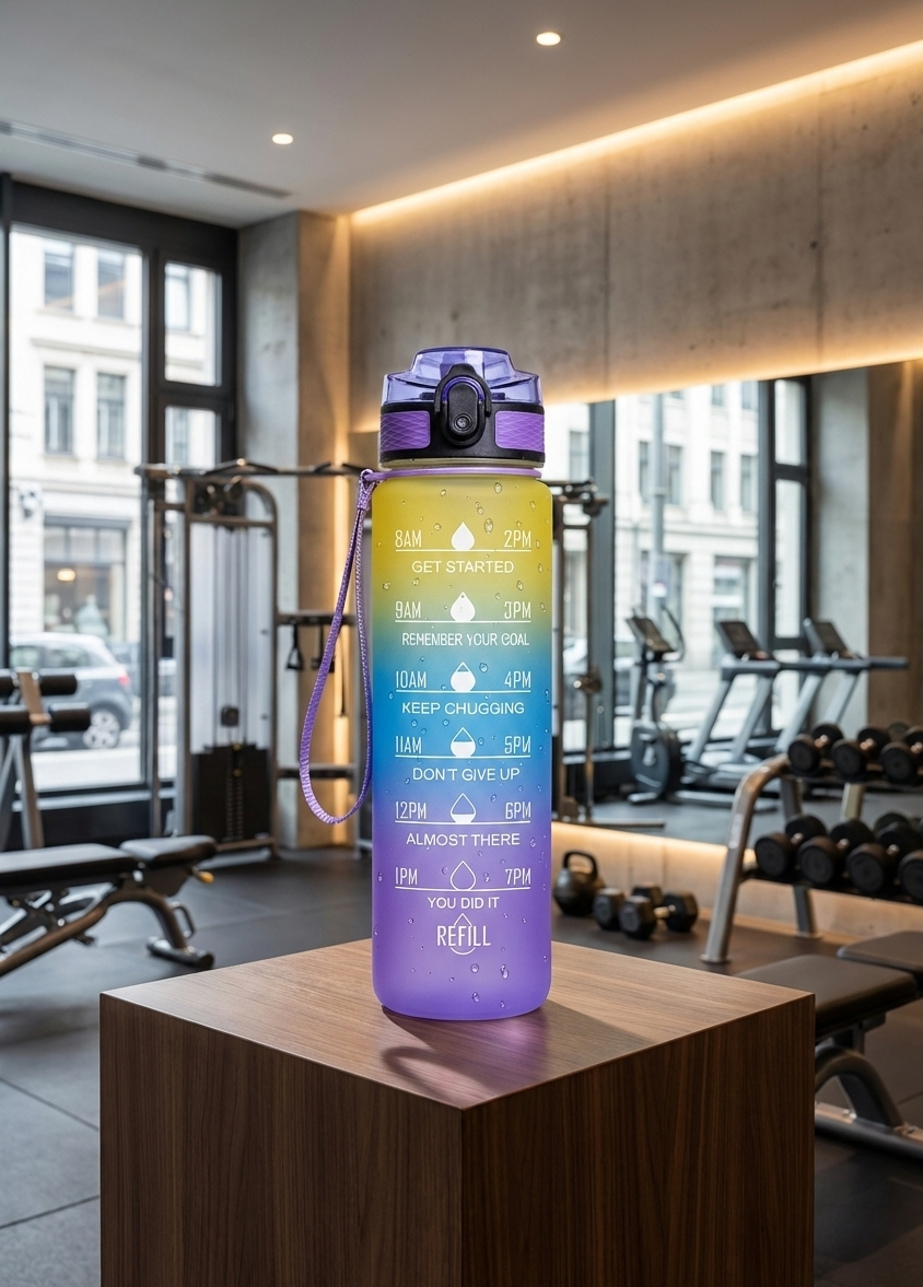 Erreiche deine täglichen Trinkziele mühelos mit unseren 1-Liter-Wasserflaschen inklusive motivierender Tageszeit-Skala. Gefertigt...