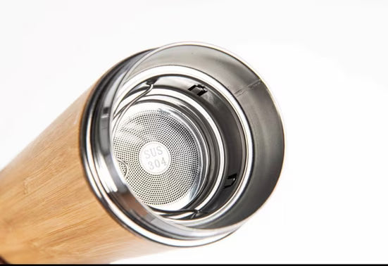 Thermoflasche Isolierflasche Bambus & Edelstahl, Teesieb, 500 ml, auslaufsicher