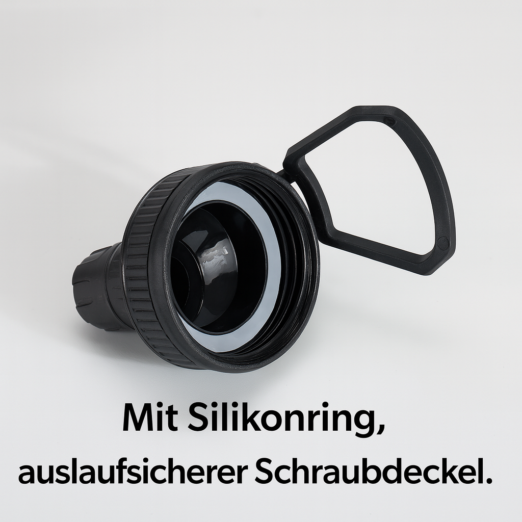 - Auslaufsicherer Deckel mit integriertem Silikonring, das Mundstück ist durch den Sportverschluss vor Schmutz und Staub geschützt