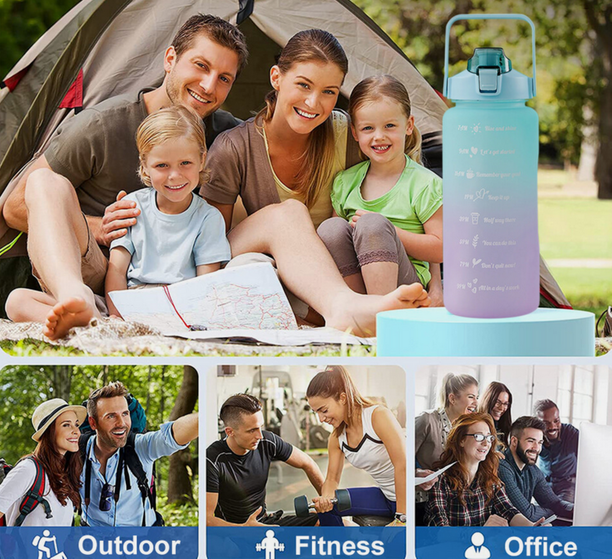 - INDOOR oder OUTDOOR: Auf Ausflügen und Wanderungen, beim Sport, im Büro. Die 2 L Motivationstrinkflasche ist überall begehrt, ein Geschenk für Gesundheitsbewusste